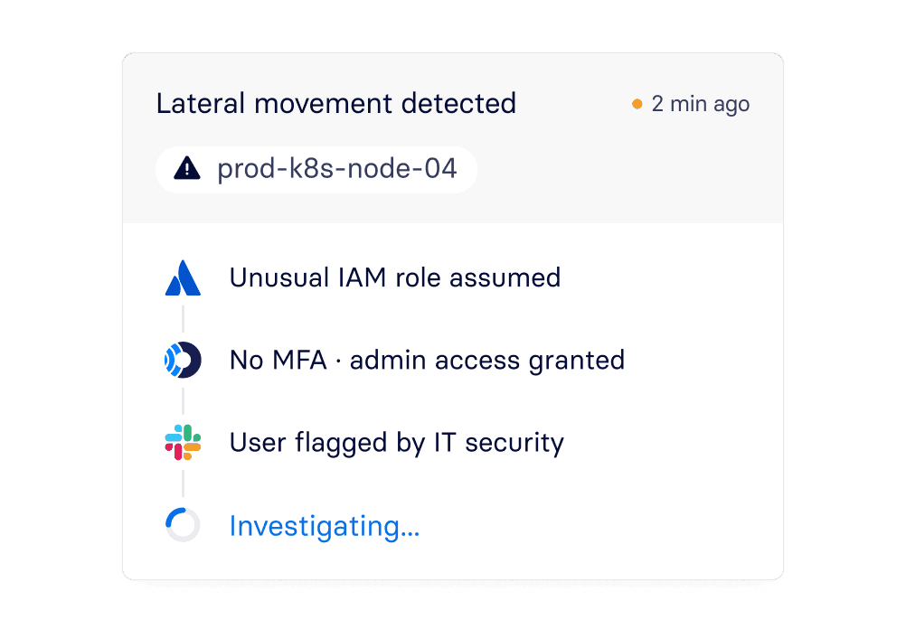 Agents pivot across your full data lake, alert history, and enrichments to deliver a complete investigation in minutes, not hours.