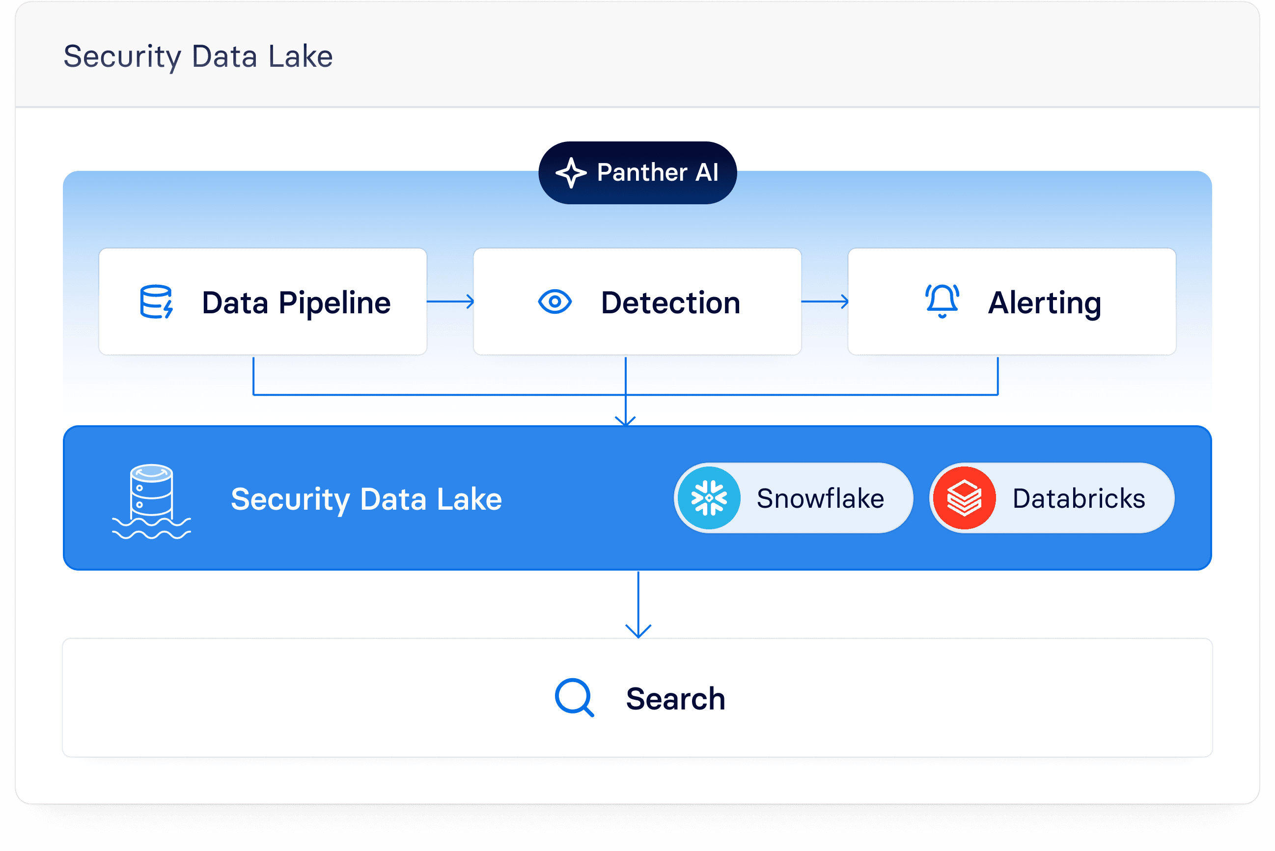 Your data lives in your own Snowflake or Databricks instance — no vendor lock-in, no ingestion budgets forcing you to leave logs behind, no retention policies limiting what Panther AI can pivot across during an investigation. The foundation of the closed loop is complete data.