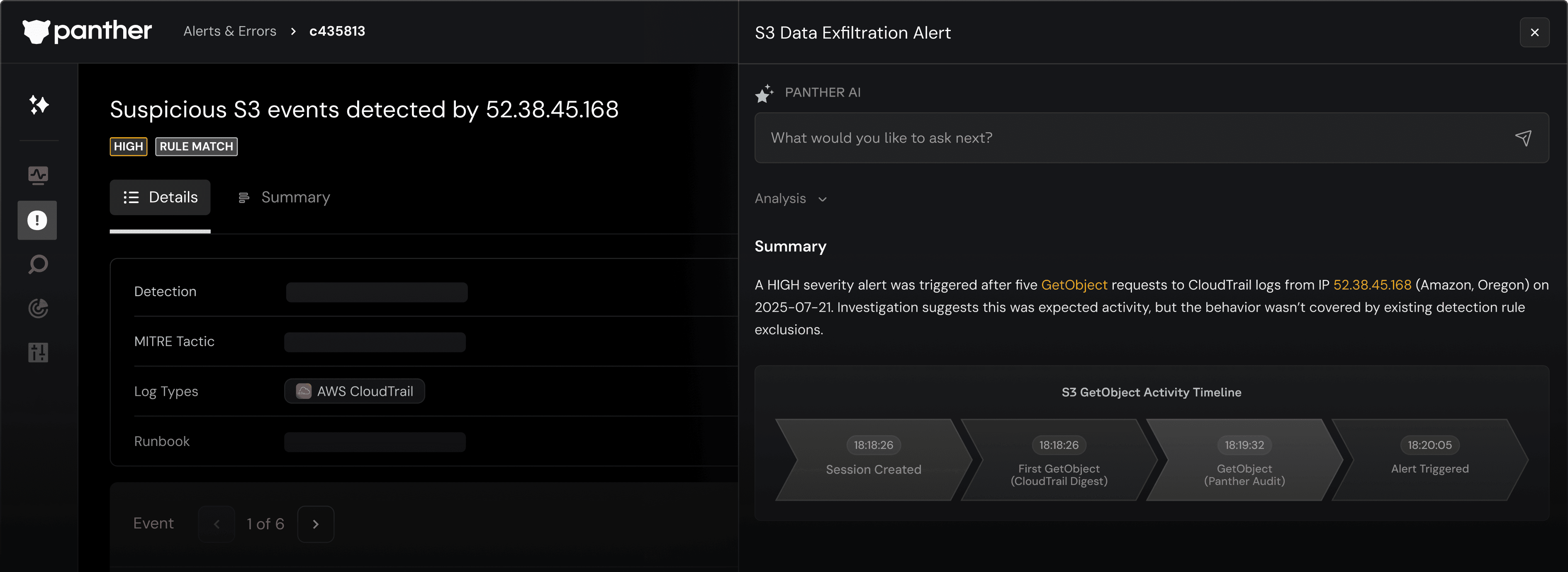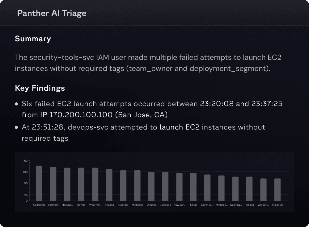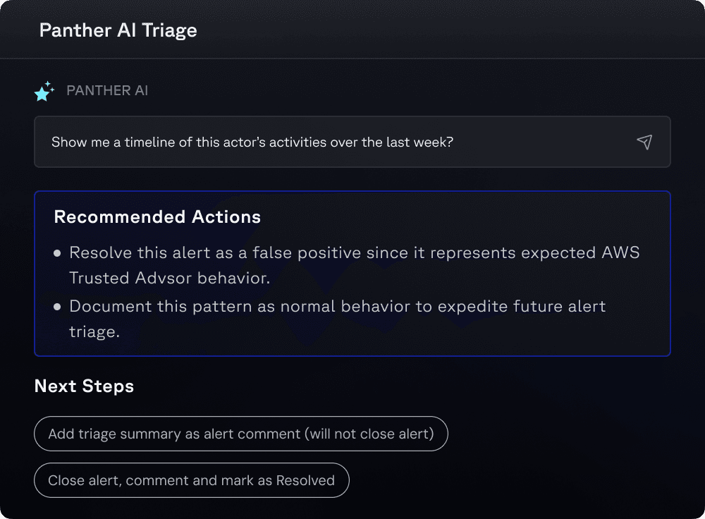 Streamline alert triage, simplify detection engineering, and accelerate incident response with Panther AI.