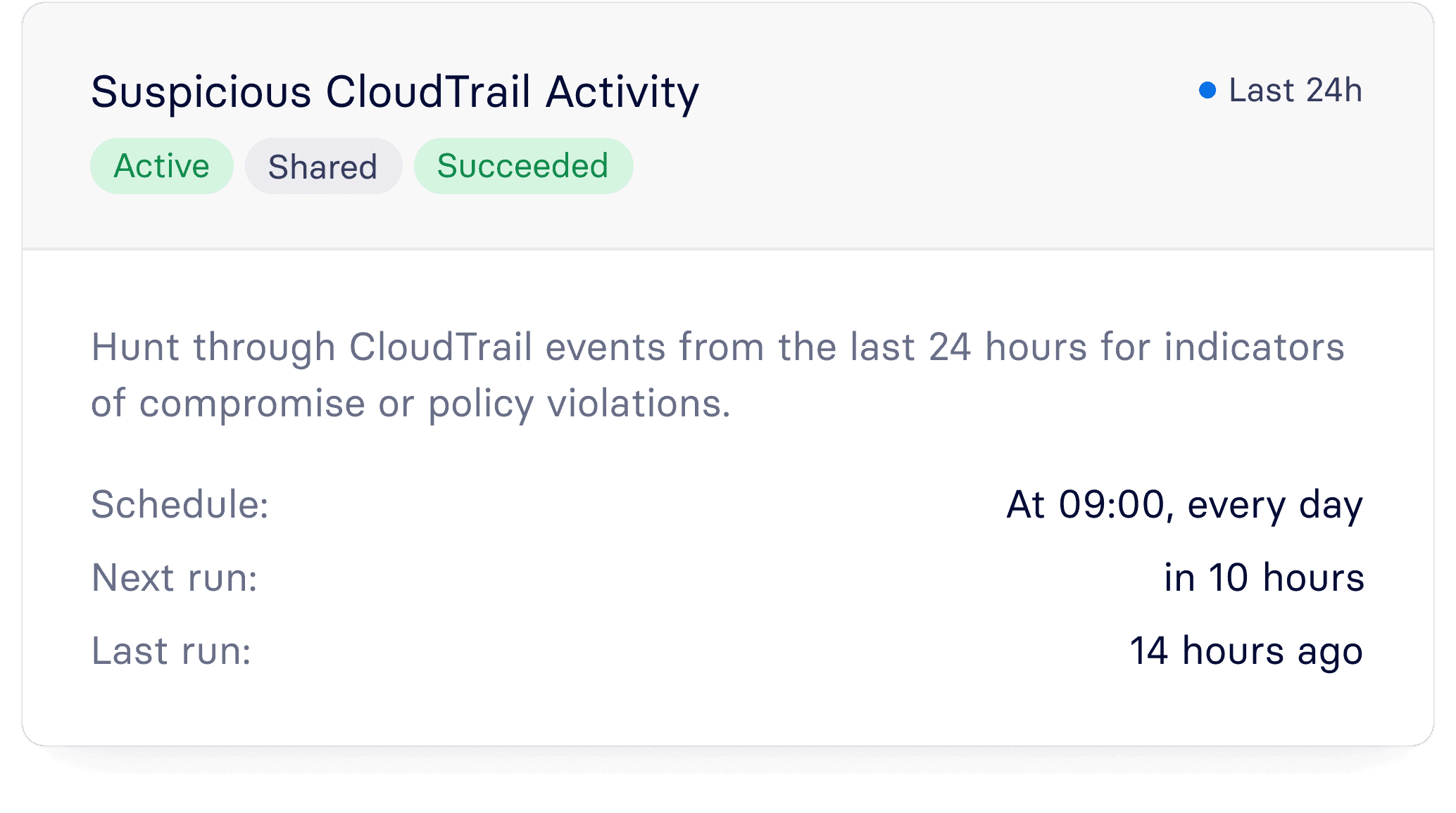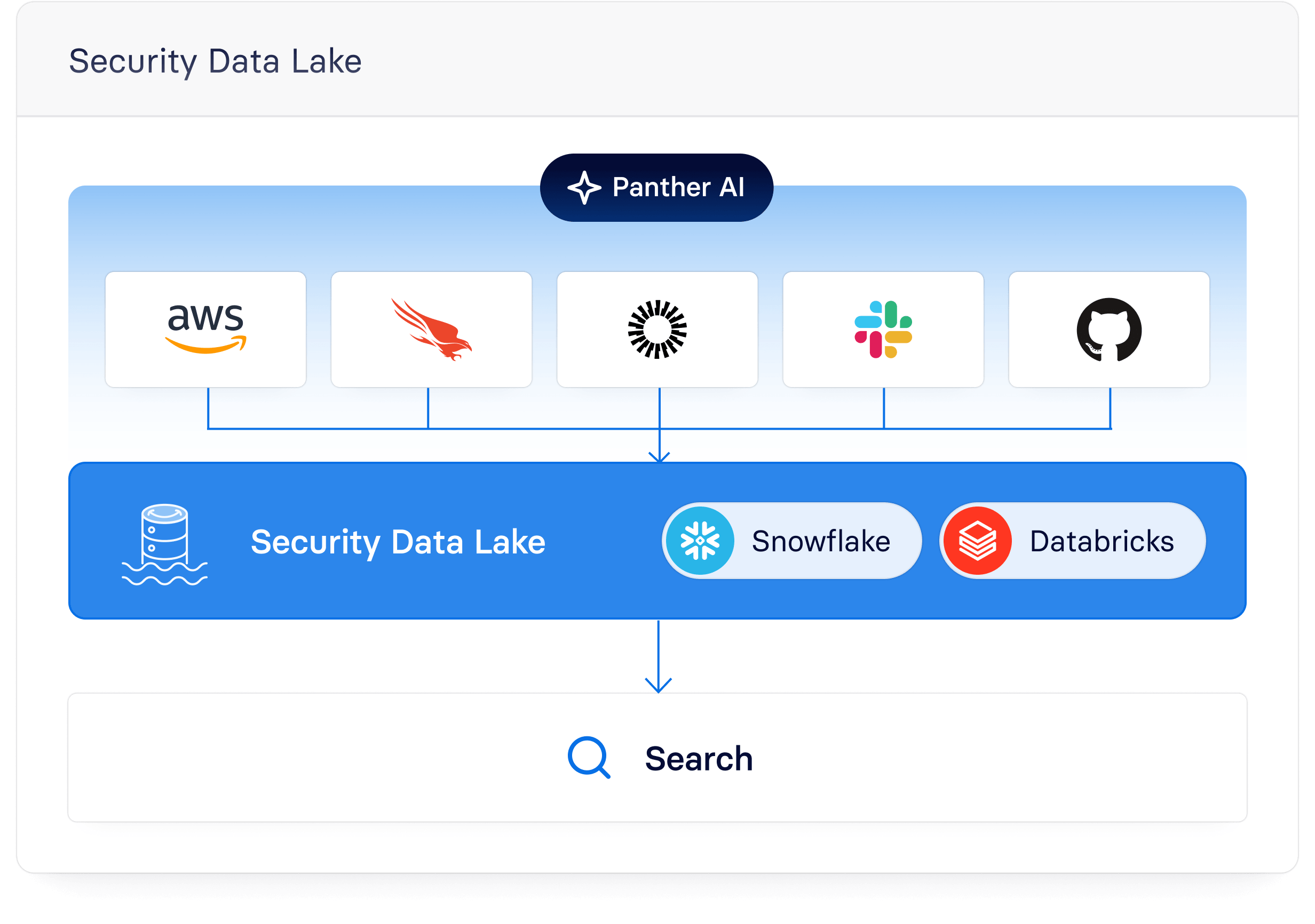 Platform-native AI. Panther's AI agents are embedded natively across the data lake, detection engine, and investigation layer.