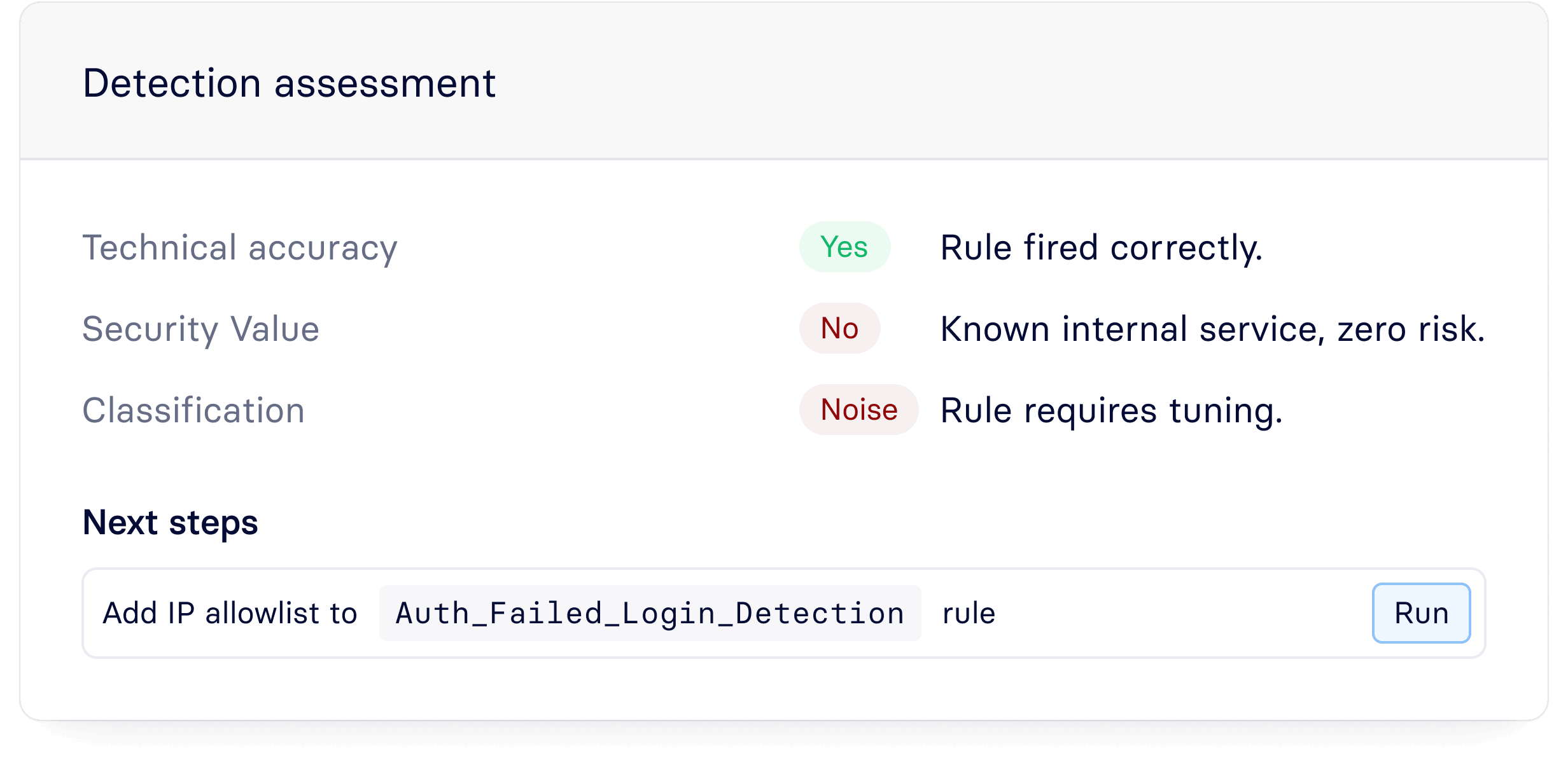 Intelligence that compounds . Because Panther owns the detection engine, AI doesn't just triage alerts — it improves the rules that generate them.