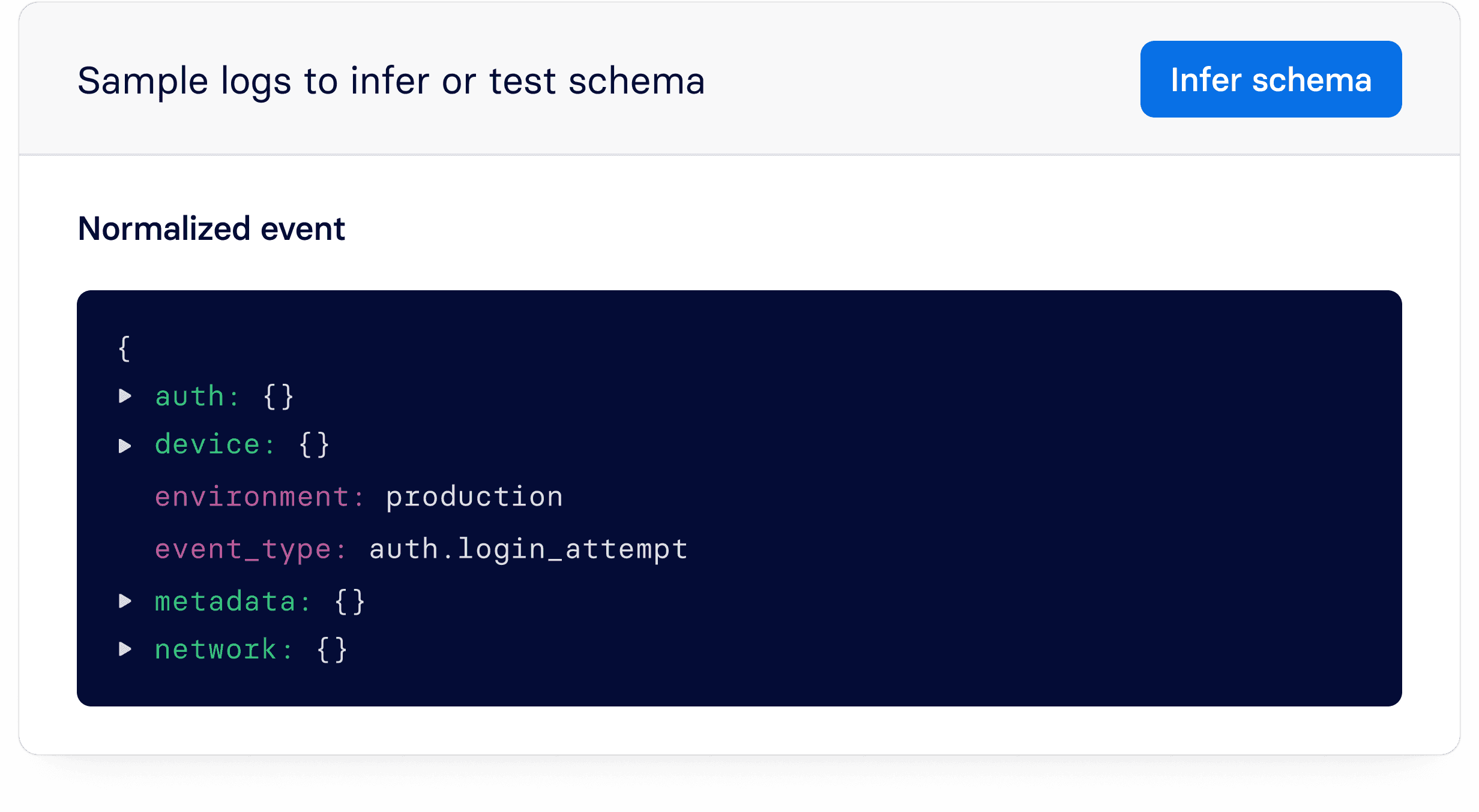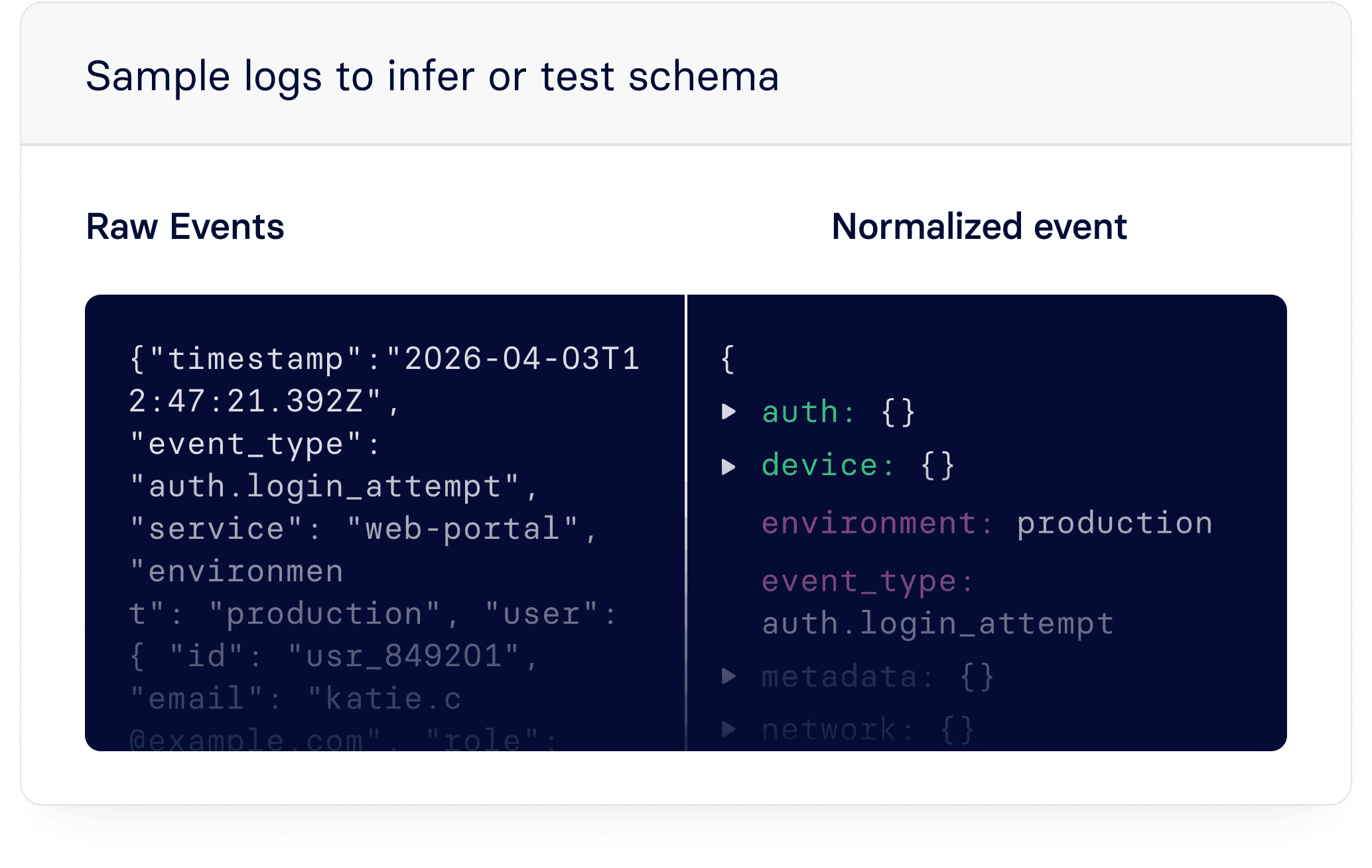 Automatically generate schemas for any source, turning data into structured, queryable security intelligence without manual configuration.