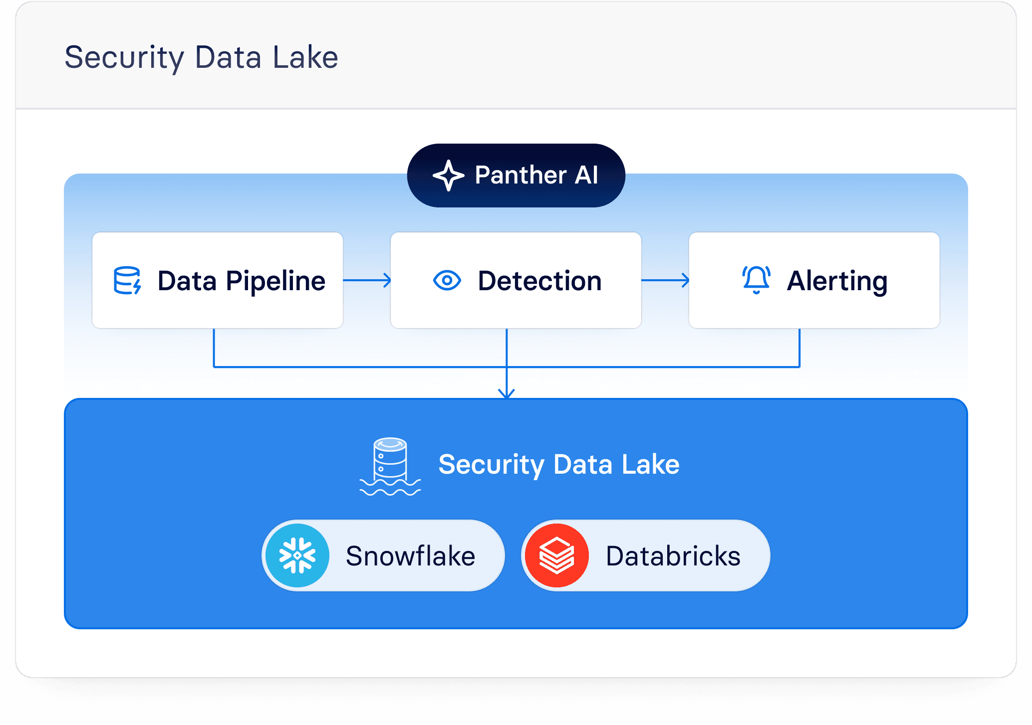 Panther runs natively on your Snowflake or Databricks instance, keeping your security data in infrastructure you already own and control.