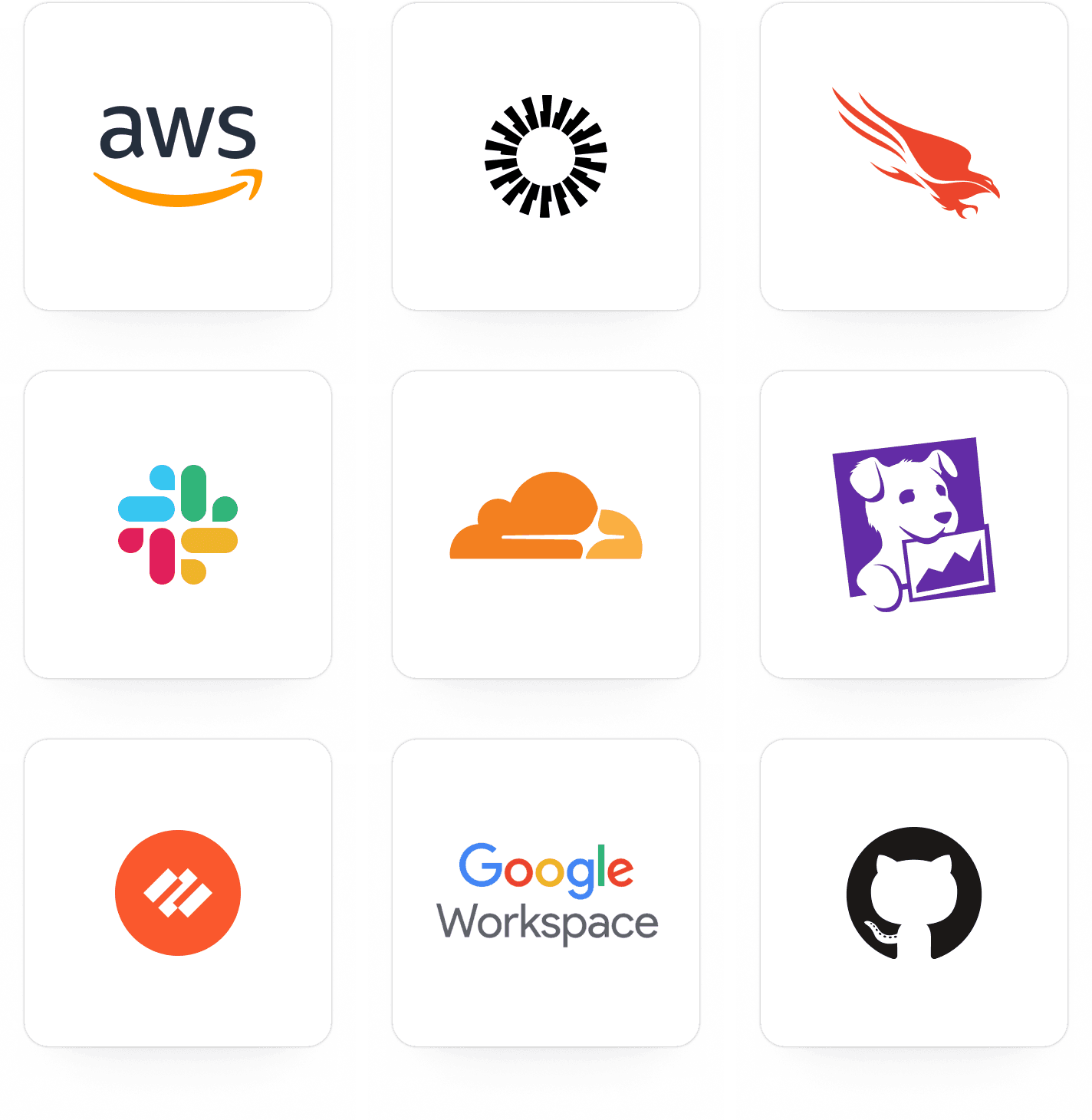 Native integrations for the tools your team already uses like AWS, Okta, CrowdStrike, Slack, and more.