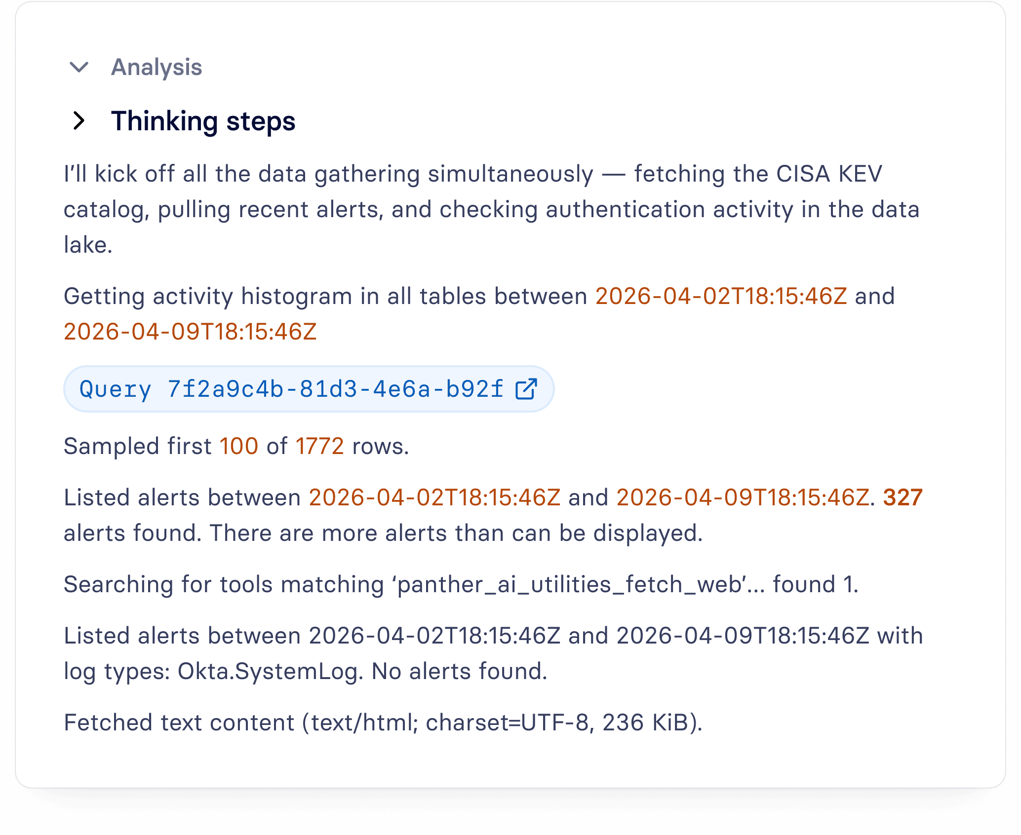 Panther AI can access external web pages during investigations to enrich findings with real-time threat intelligence and context.