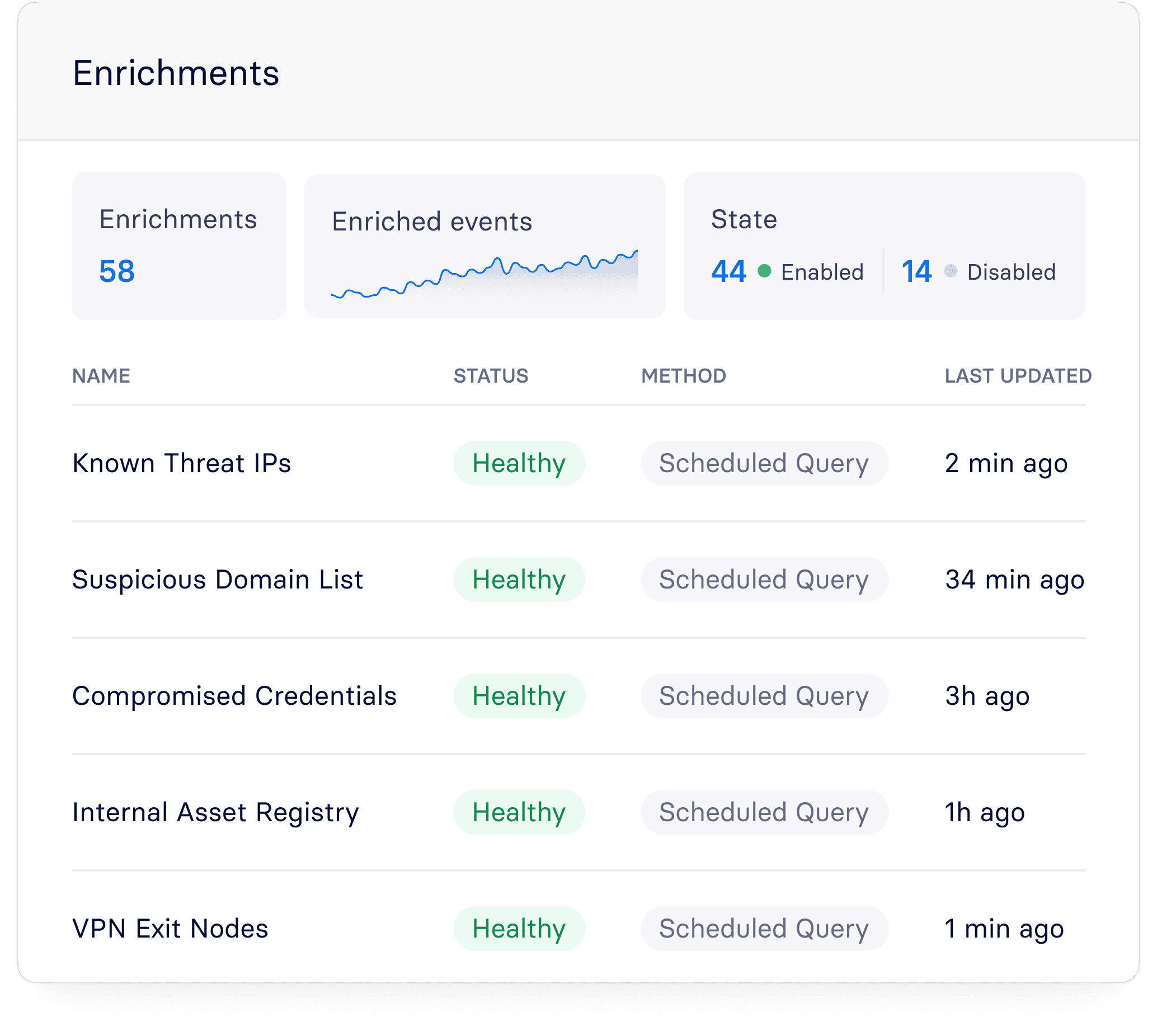 Combine out-of-the-box detections from Panther's research team with native threat intelligence feeds and custom enrichment sources, so every investigation runs on current, complete intelligence.